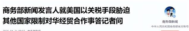 商务微新闻:2025-04-21:商务部新闻发言人就美国以关税手段胁迫其他国家限制对华经贸合作事答记者问
