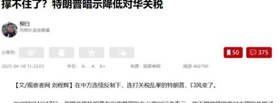 观察者网:撑不住了?特朗普暗示降低对华关税